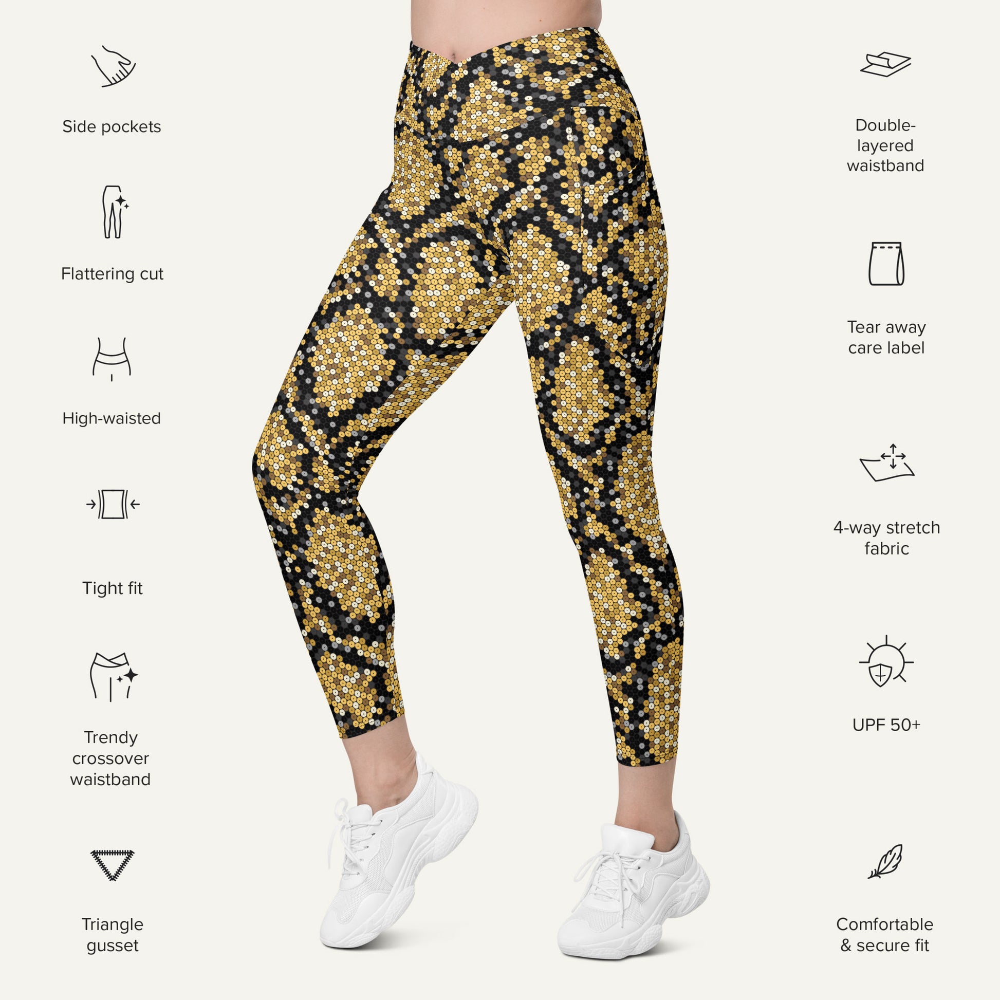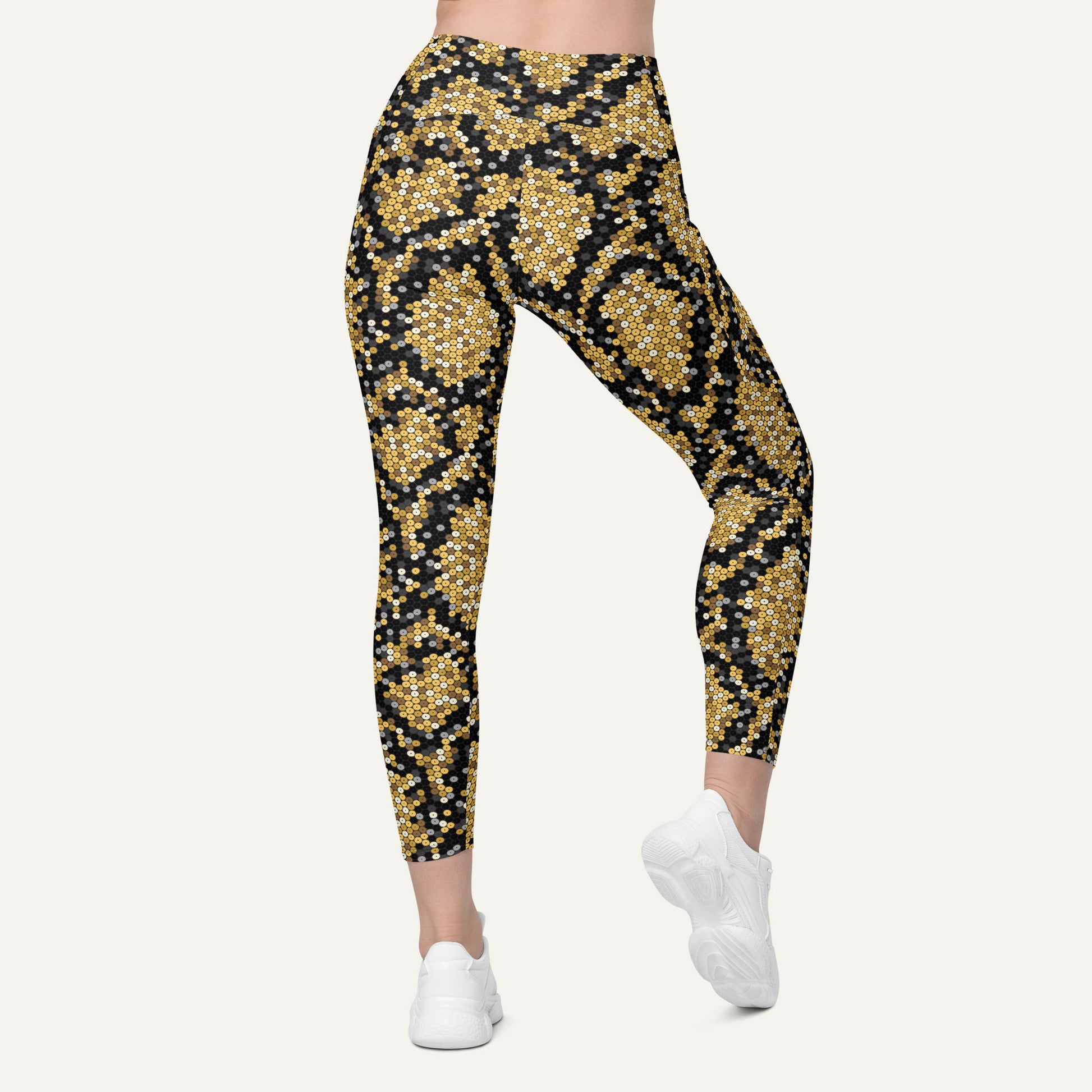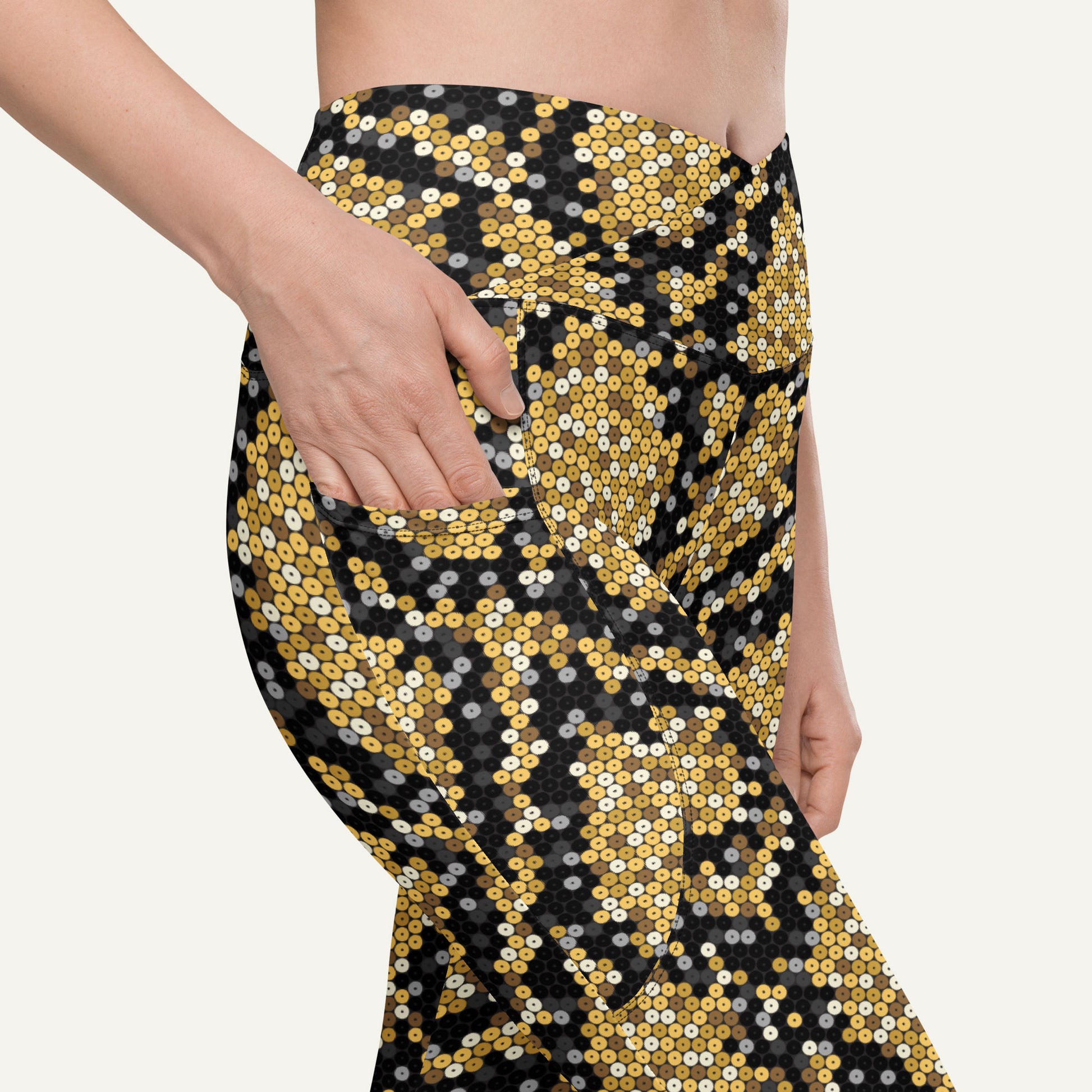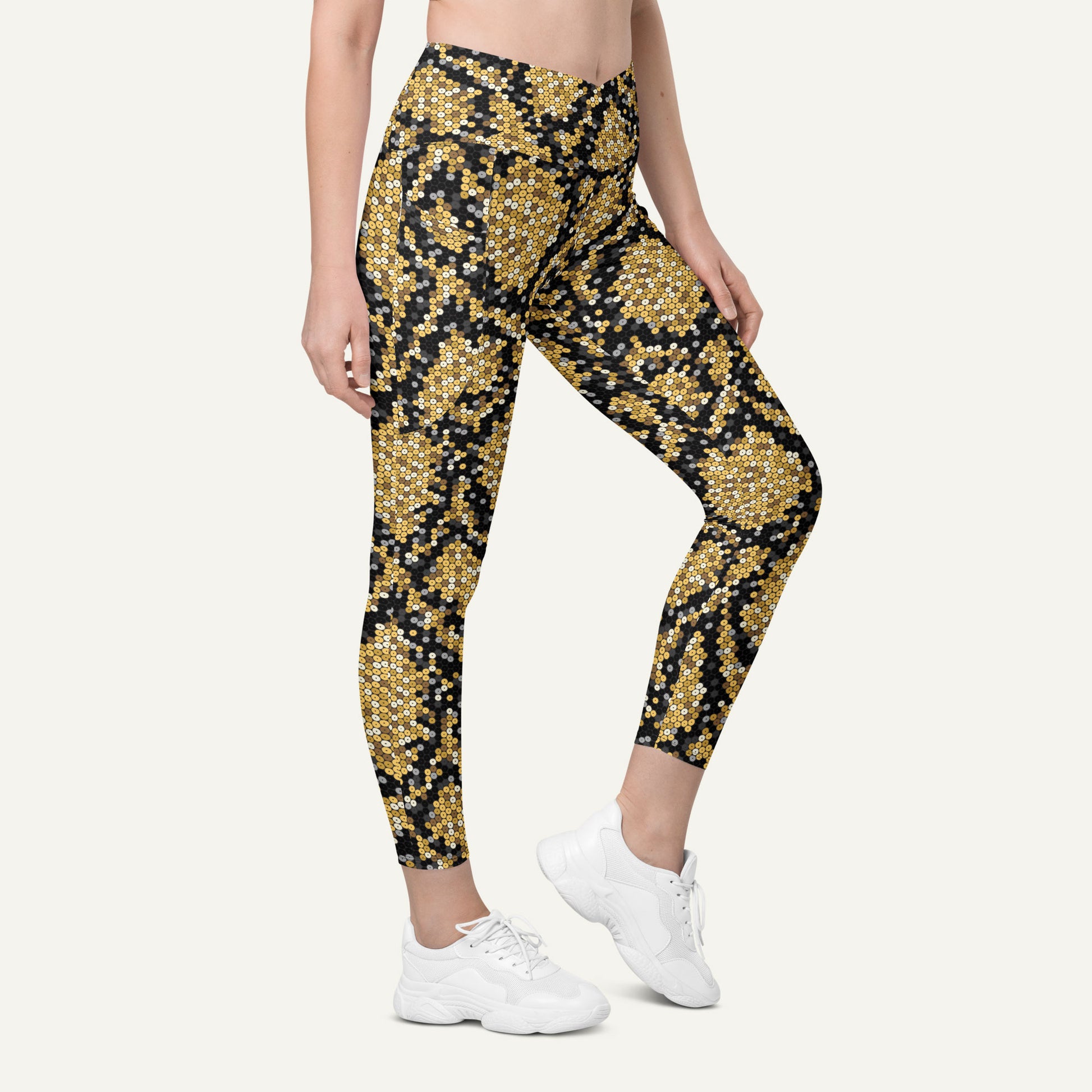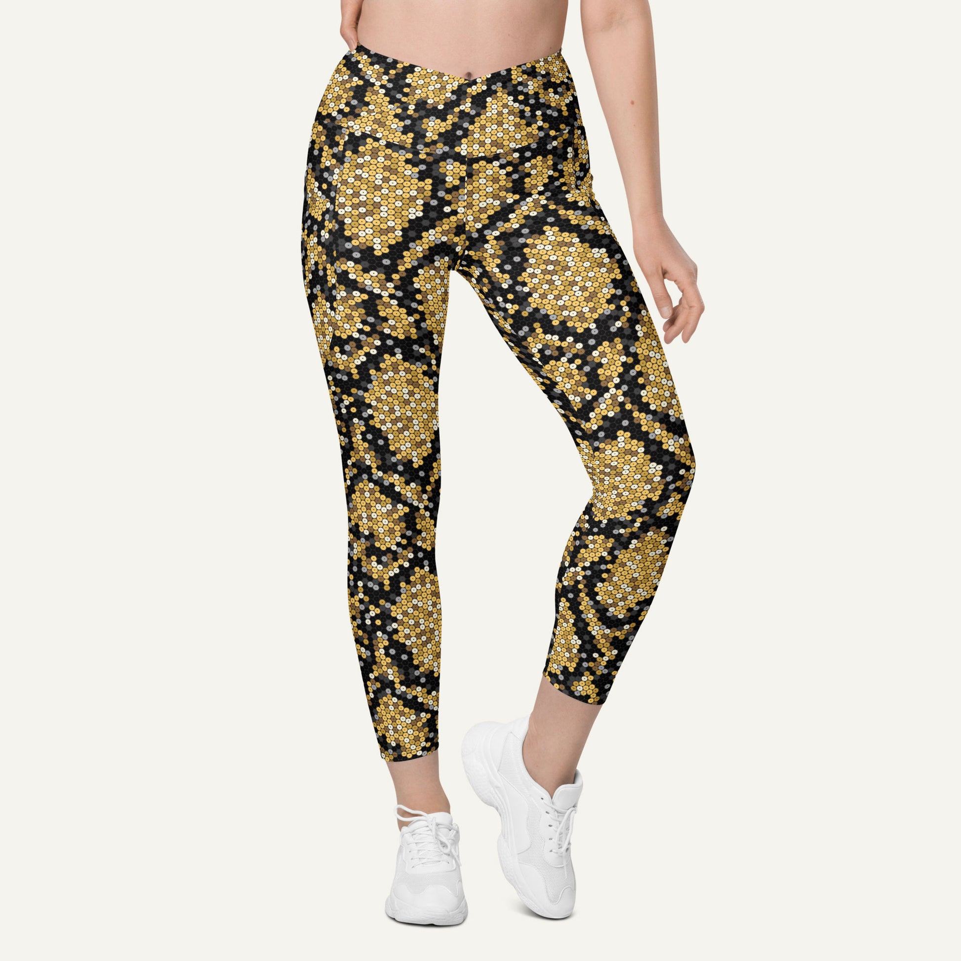 Gold Sequin Snakeskin Crossover Pocket Leggings