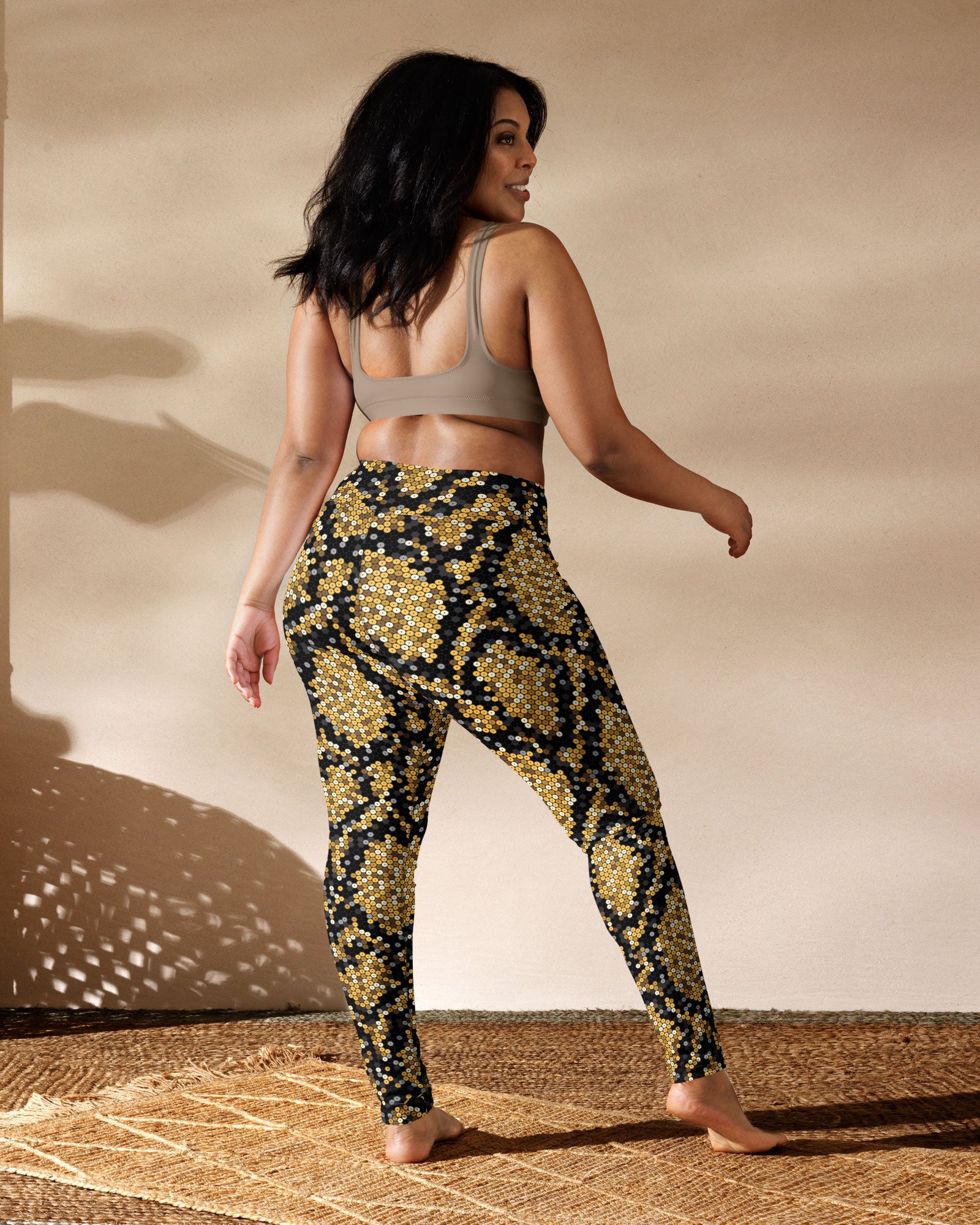 A striking blend of shine and edge, these leggings feature a gold sequin snakeskin print that brings sequin-style confidence to your workout look.