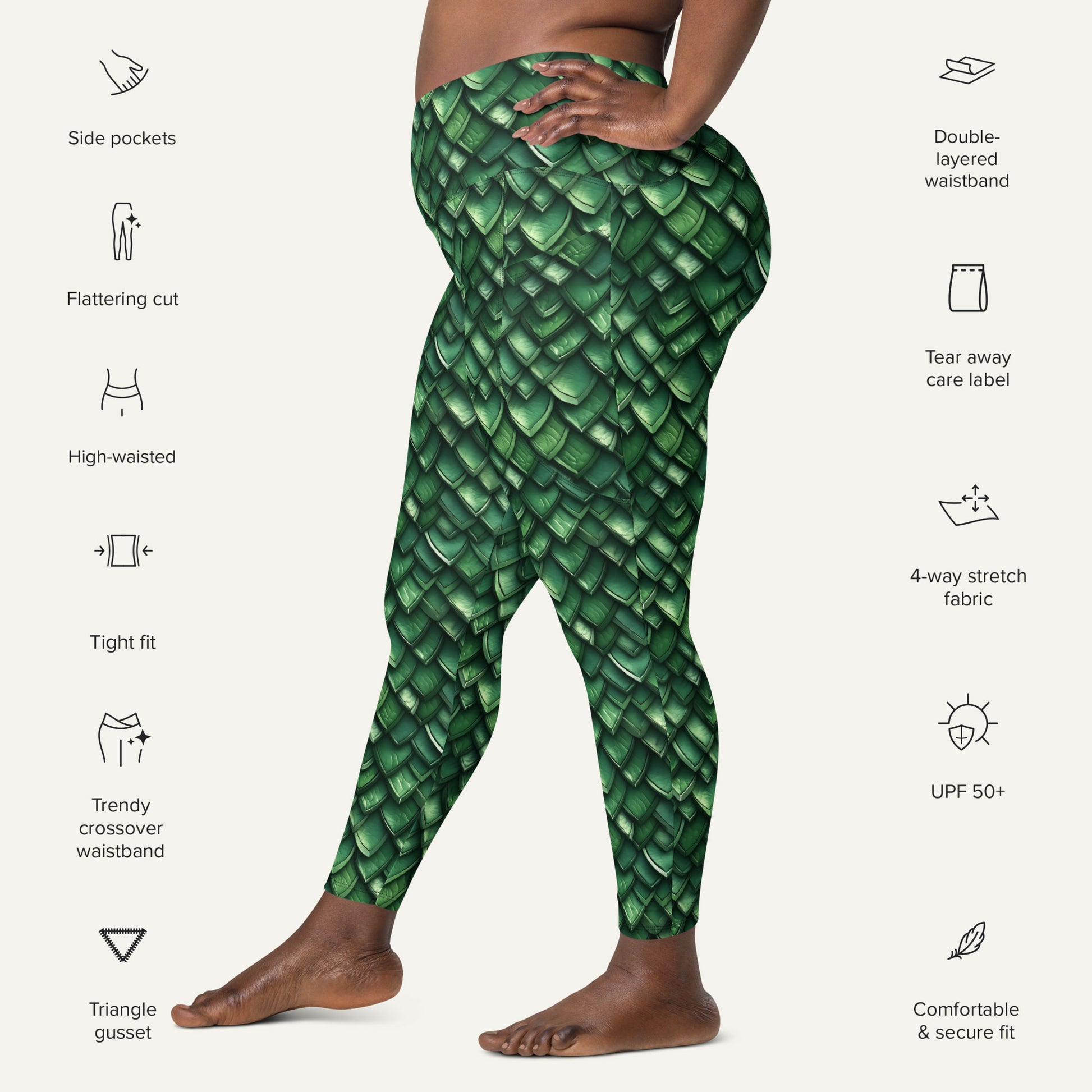 Jade Dragon Scales Crossover Pocket Leggings