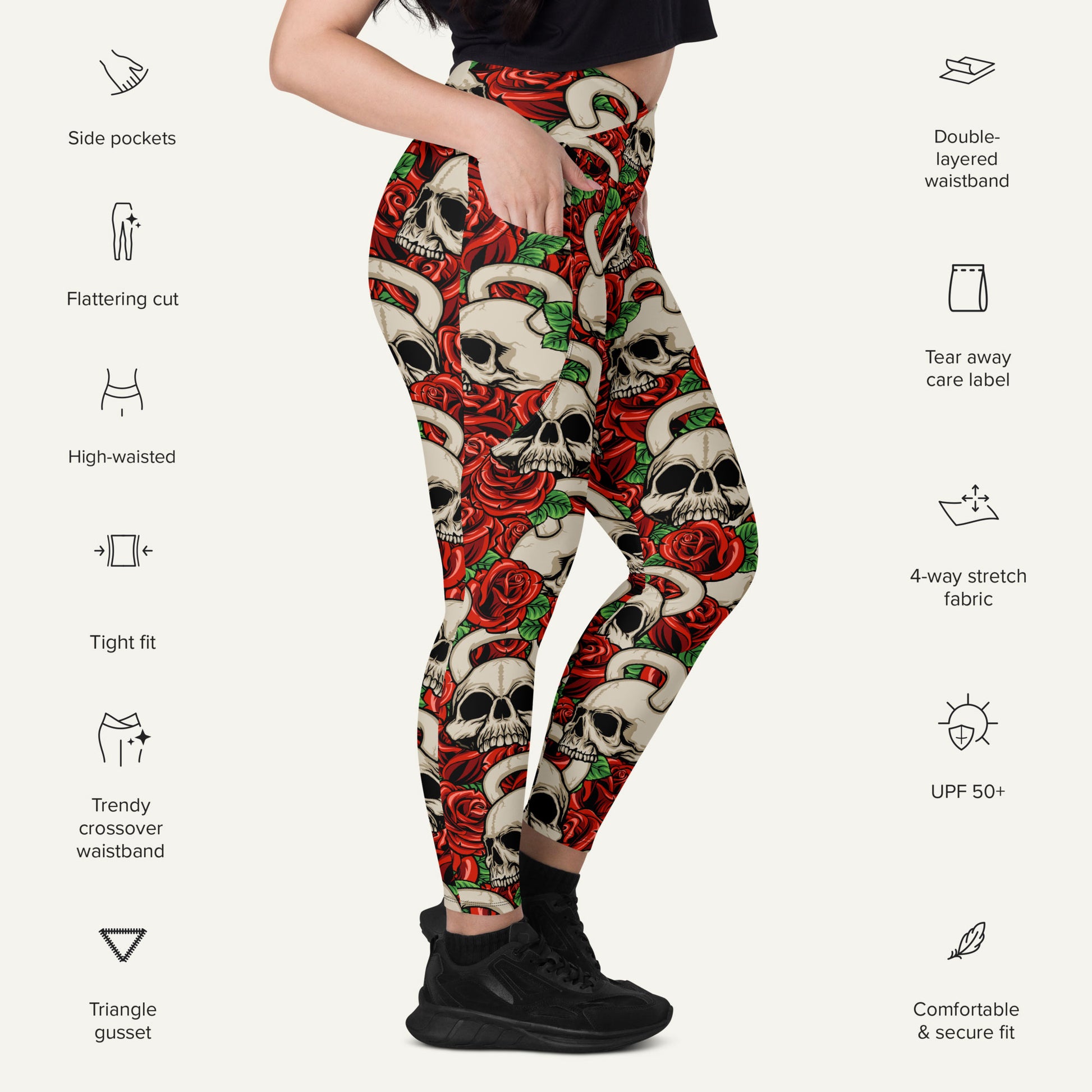 Kettlebell Skull And Roses Crossover Pocket Leggings