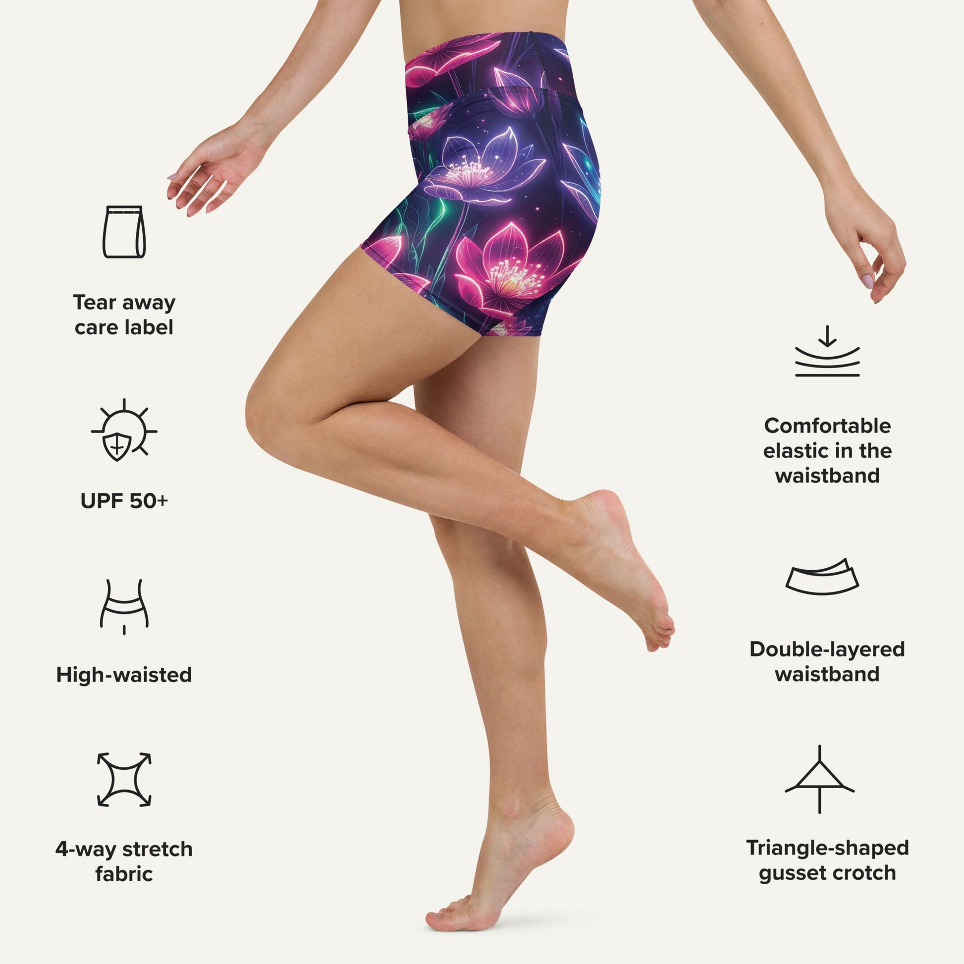 Neon Floral Print High-Waisted Shorts
