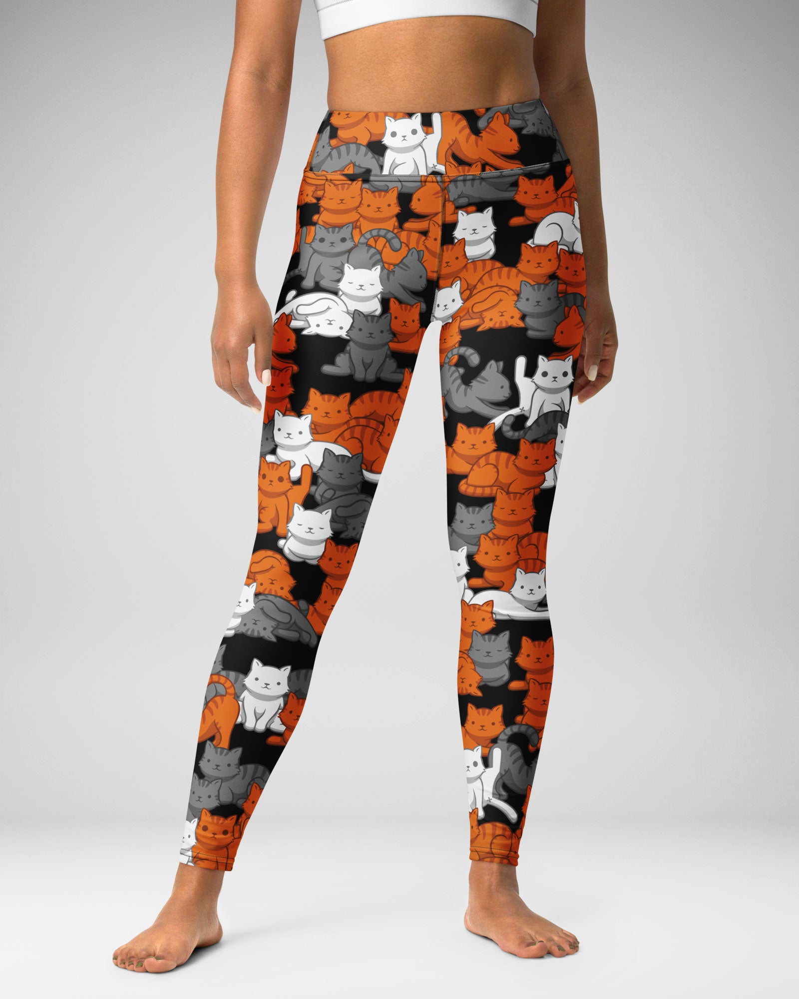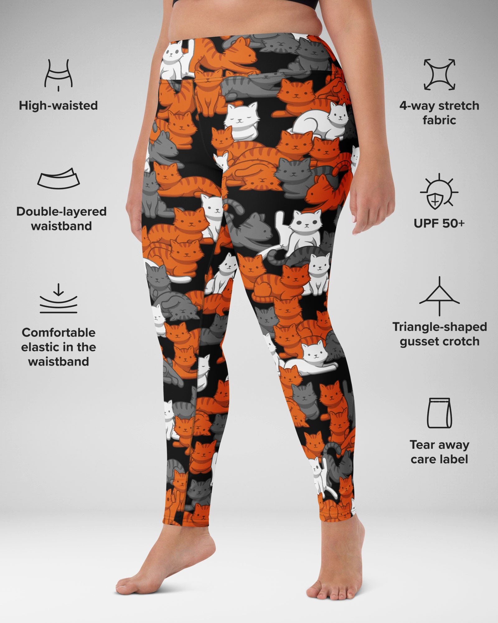 Orange Gray Tabby Camo Cat High-Waisted Leggings