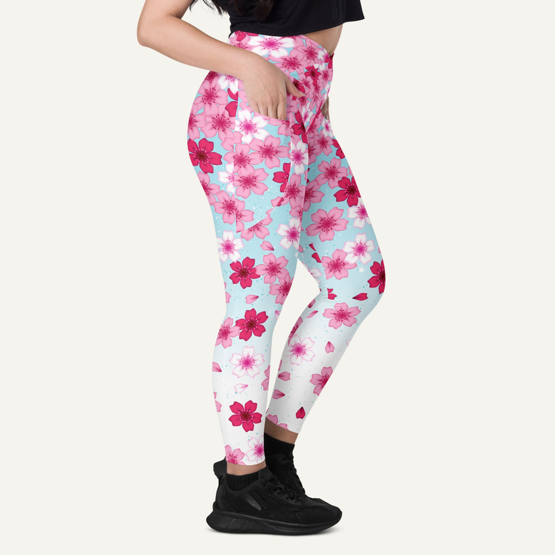 Sakura Cherry Blossoms Crossover Pocket Leggings
